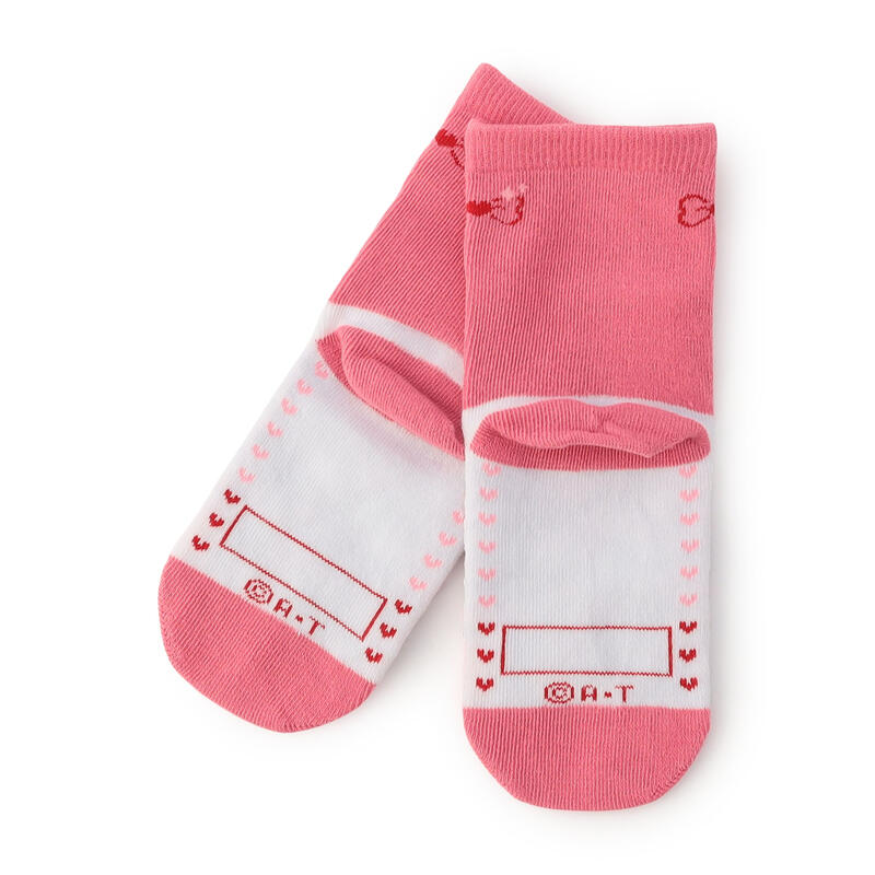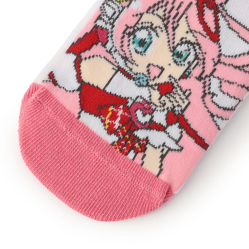 パステルカラーのプリキュア柄が足元を華やがせるクルー丈ソックス。
