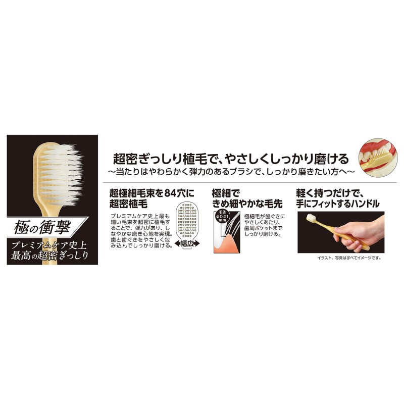 ●プレミアムケア史上最も細い毛束を84穴に超密植毛。弾力があり、しなやかな磨き心地を実現。