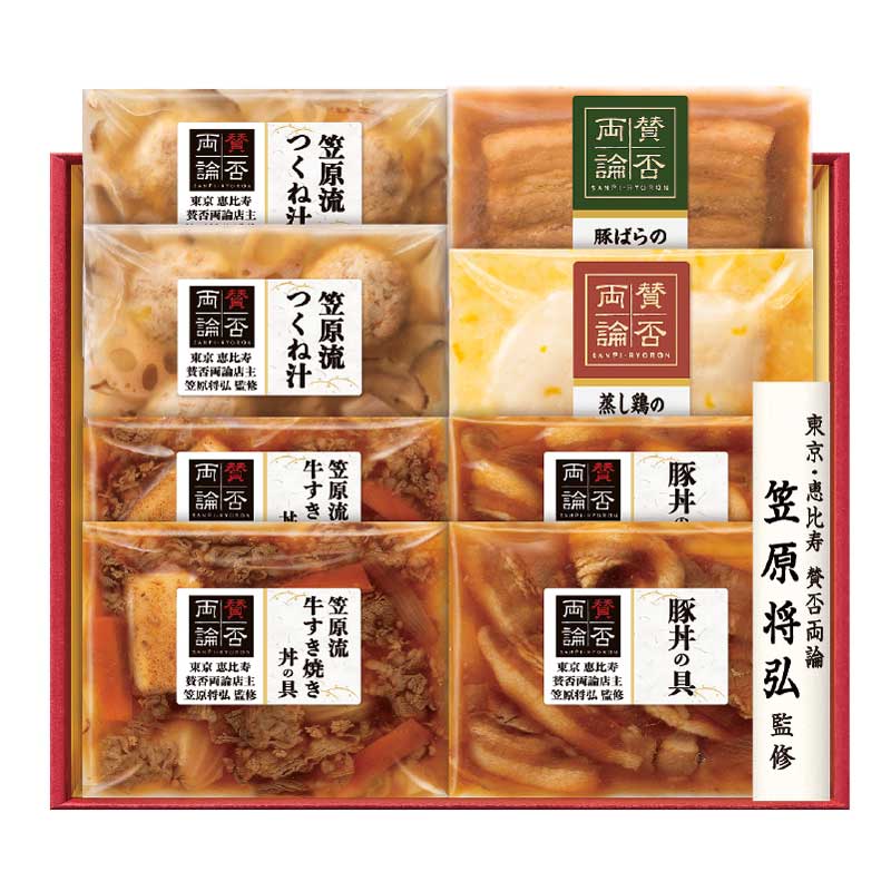 笠原流つくね汁200g×2、笠原流牛すき焼き丼の具120g×2、豚丼の具120g×2、蒸し鶏の柚子出汁餡150g、