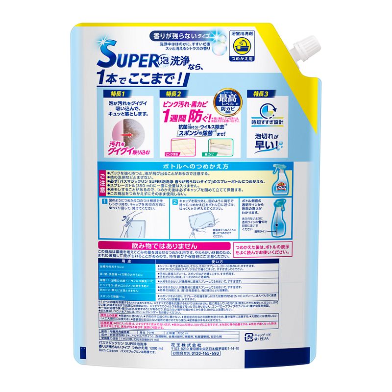花王 バスマジックリン SUPER泡洗浄 香りが残らないタイプ つめかえ 1200ml 梱販売用