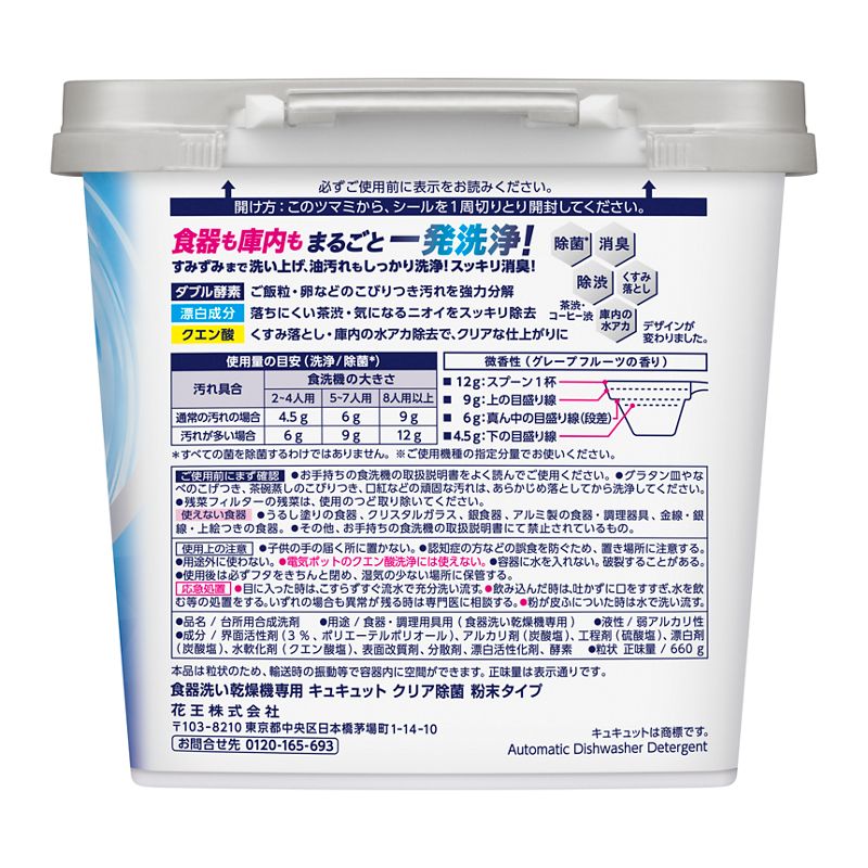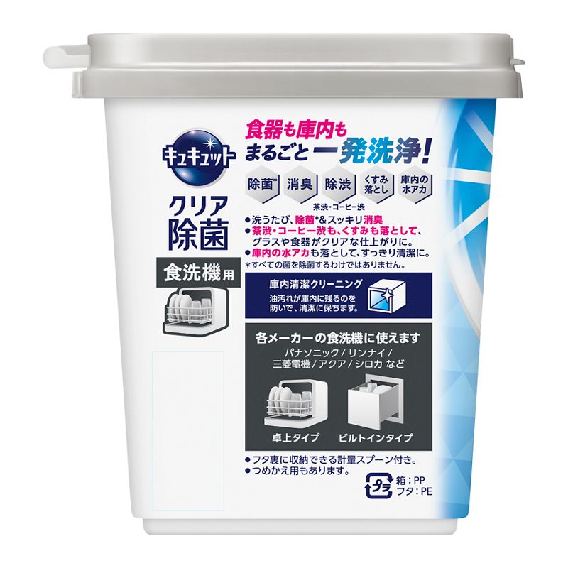 庫内の水アカ対策もできます。食器の量に合わせて適量投入できる計量スプーン入りの本体。