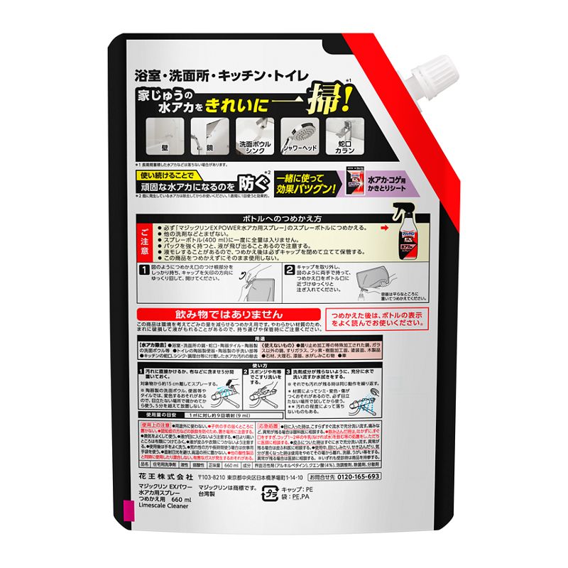 浴室、洗面所、キッチンまわり、トイレなど家じゅうに使える。使い続けることで頑固な水アカになるのを防ぐ