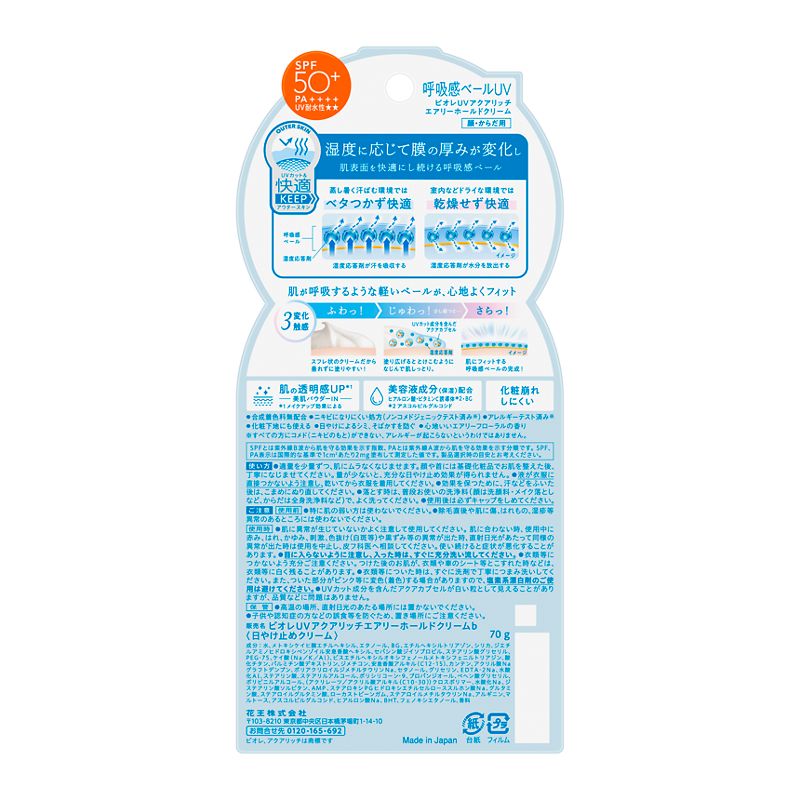 肌表面を快適にし続ける密着スフレクリームの呼吸感ベールUV。