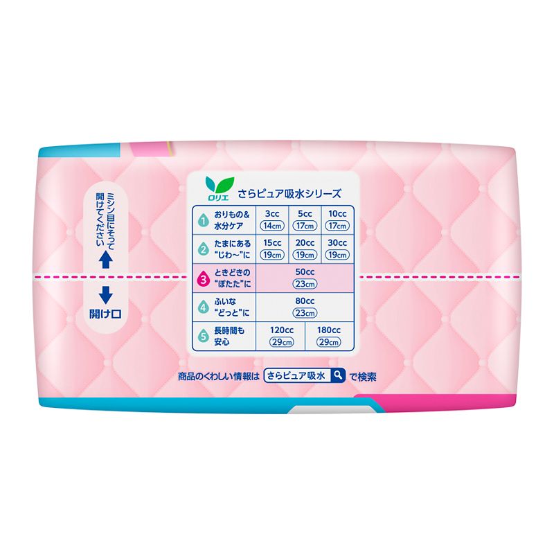 吸収量50cc、長さ23cm、無香料。