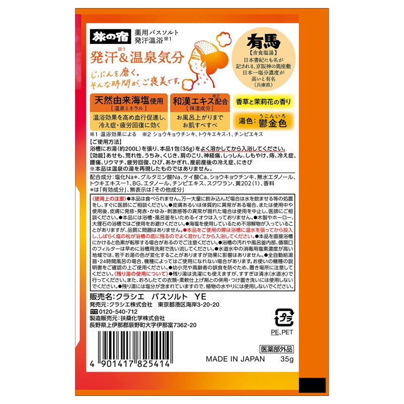 ●効能…あせも、荒れ性、うちみ、くじき、肩のこり、神経痛、しっしん、しもやけ、痔、冷え症、腰痛、リウマチ、疲労回復、ひび