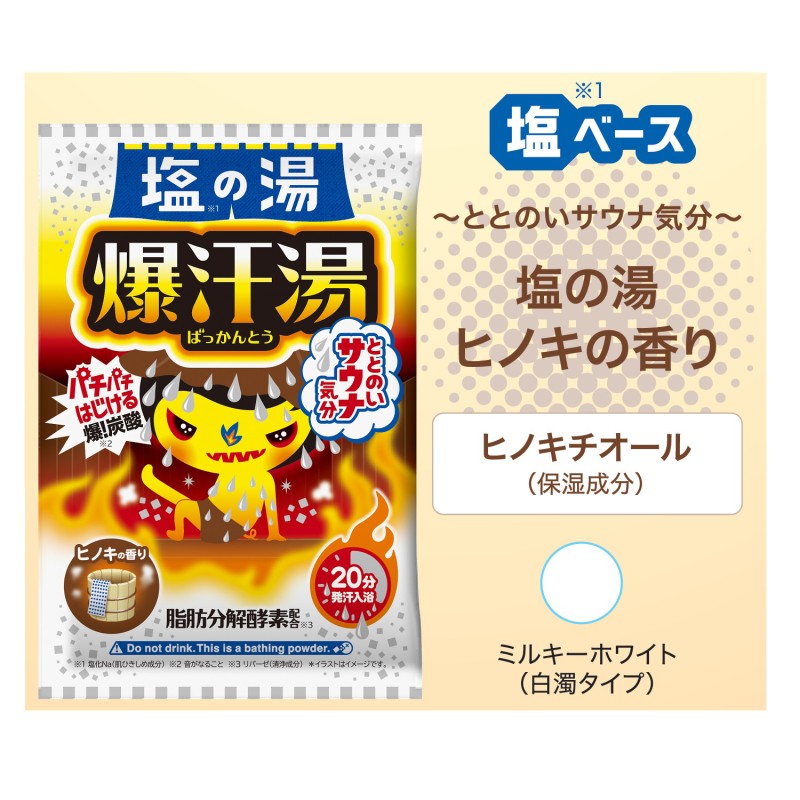 ウム、リパーゼ、トウガラシ果実エキス、ショウガ根茎エキス、硫酸Mg、ヒノキチオール、海塩、温泉水、シリカ、セルロースガム