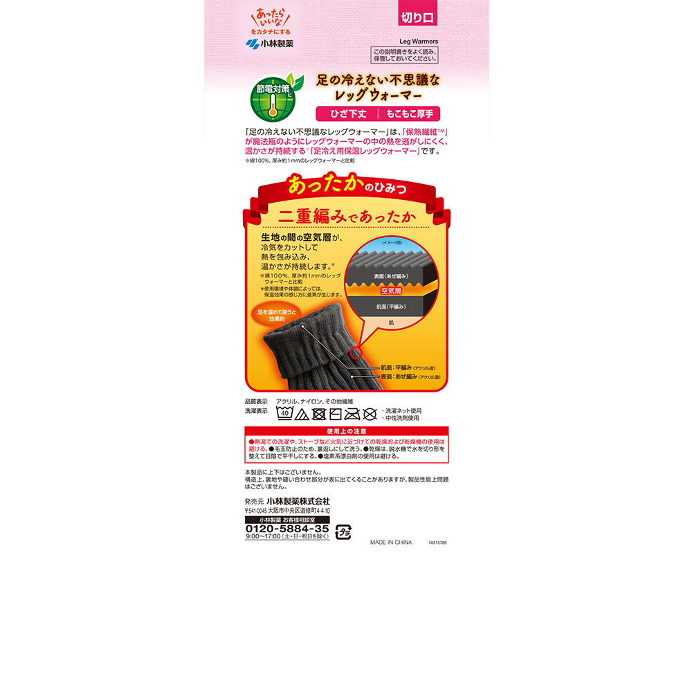 レッグウォーマー全体が二重編み構造になっていて熱を包み込みます。