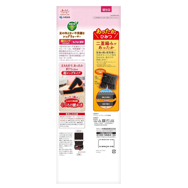 レッグウォーマー全体が二重編み構造になっていて熱を包み込みます。
