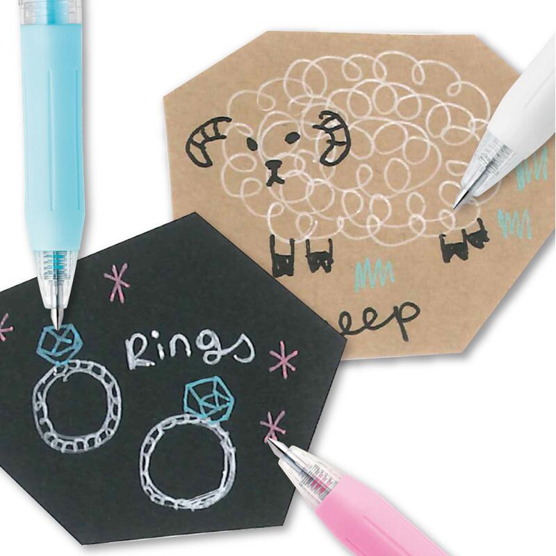 黒い紙など濃い色の紙にも最適。クリップは折れにくい金属製のバインダークリップを採用。