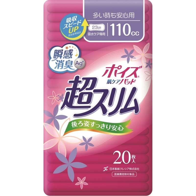 - 薄さ2.3MM、パッドサイズ8.5×23CM、吸収量目安110CC