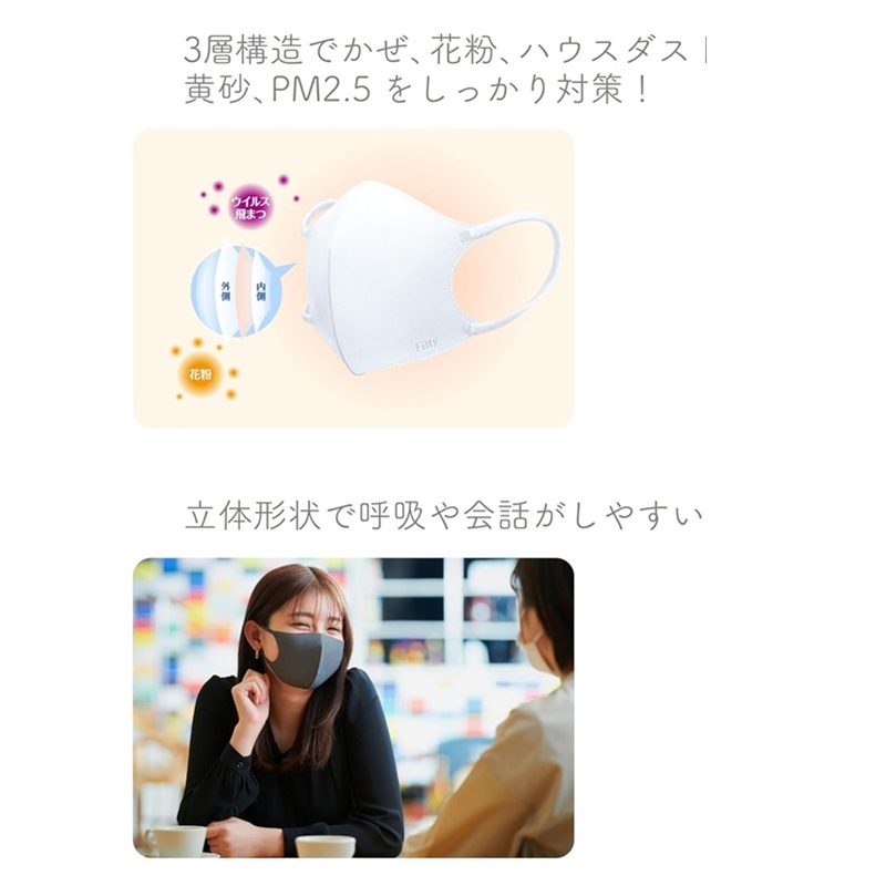 ウイルス飛沫対策とファッションを兼ね備えた不織布の立体形状のマスクです。