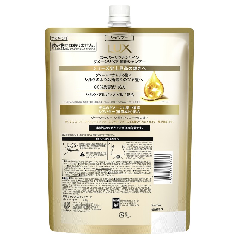 ●毛先のダメージも集中補修、シアバター(補修成分)配合。ジューシーフルーツと華やかフローラルの香り。