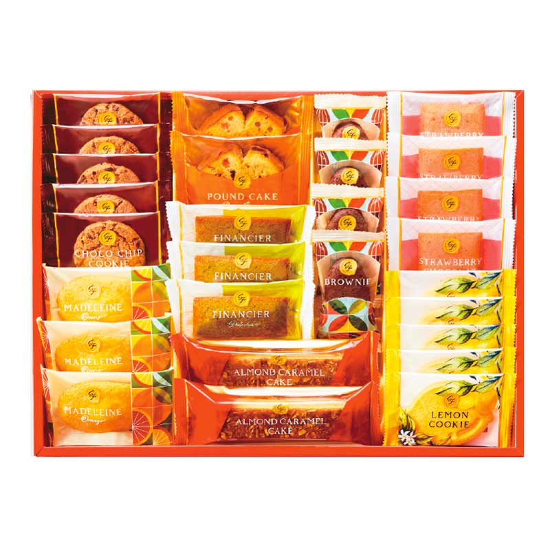 オレンジマドレーヌ3個、ストロベリーショコラケーキ4個、ブラウニー4個