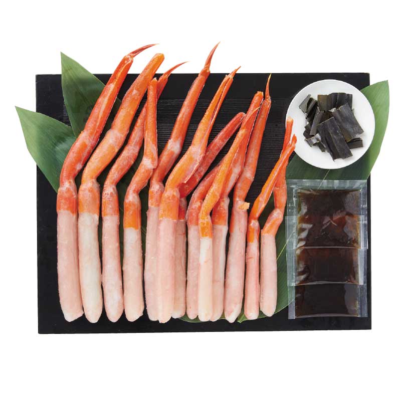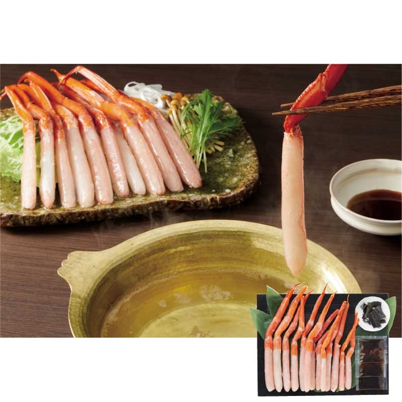 紅ずわいがにしゃぶしゃぶ用400g(北海道産)、しゃぶしゃぶ用たれ×3、だし用昆布×1