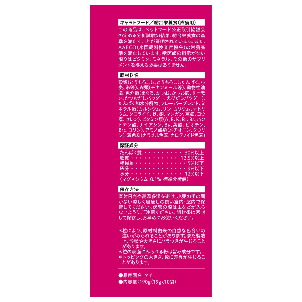 ・芳醇な魚介の香りと旨味が広がる、成猫用総合栄養食ドライフードです。
