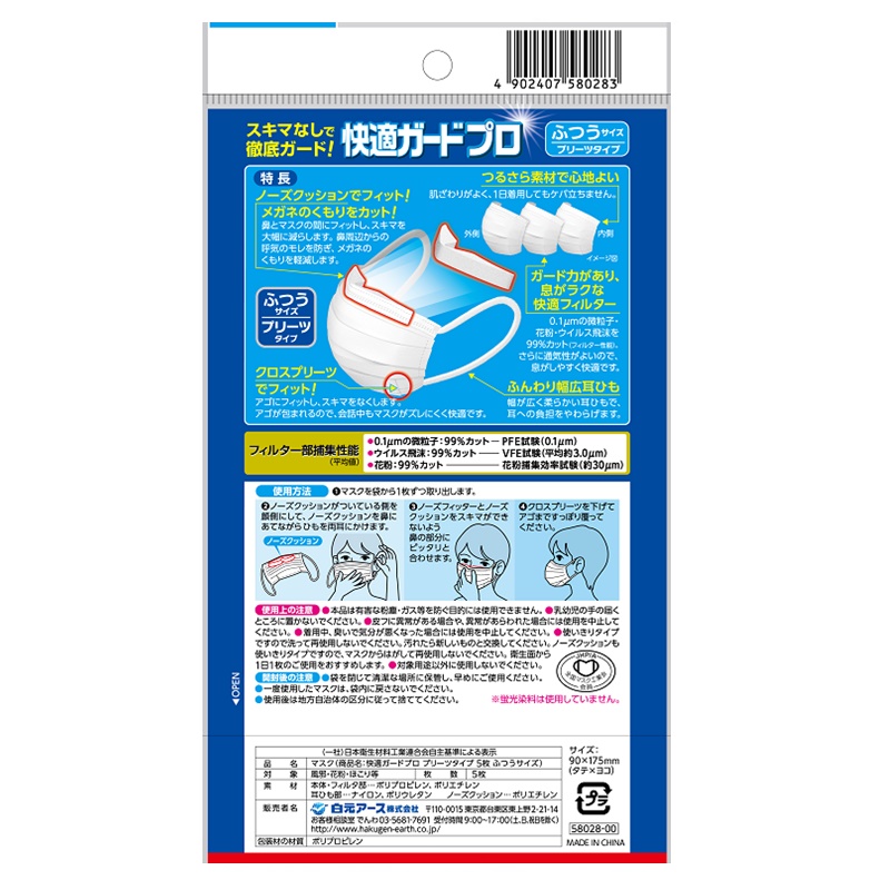 (4)クロスプリーツを下げてアゴまですっぽり覆ってください。