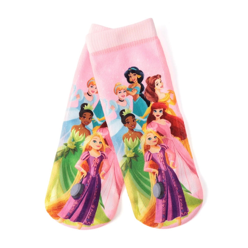 ディズニープリンセスを甲いっぱいに配した、履くのがもったいなくなりそうなソックス。