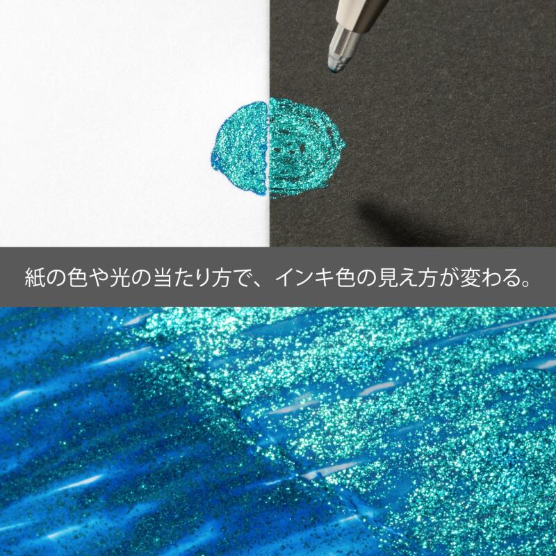 鮮やかな染料インキと、グリッター顔料がたっぷり入った、ゲルインキボールペン。