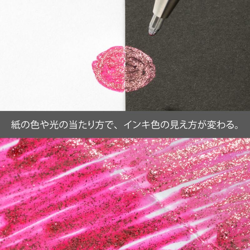 鮮やかな染料インキと、グリッター顔料がたっぷり入った、ゲルインキボールペン。