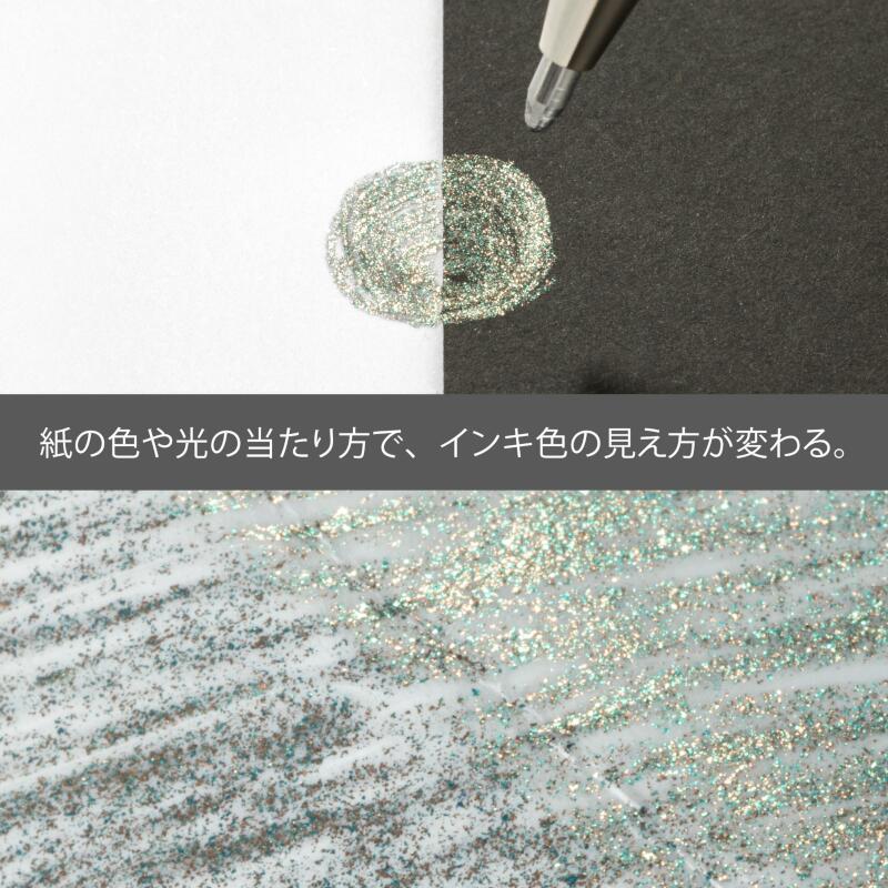 鮮やかな染料インキと、グリッター顔料がたっぷり入った、ゲルインキボールペン。