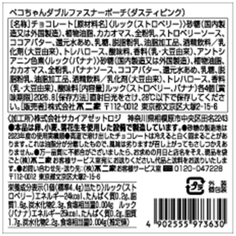 ルック8個入の普段使いにも最適な可愛いオリジナルチャーム付きペコちゃんダブルファスナーポーチです。