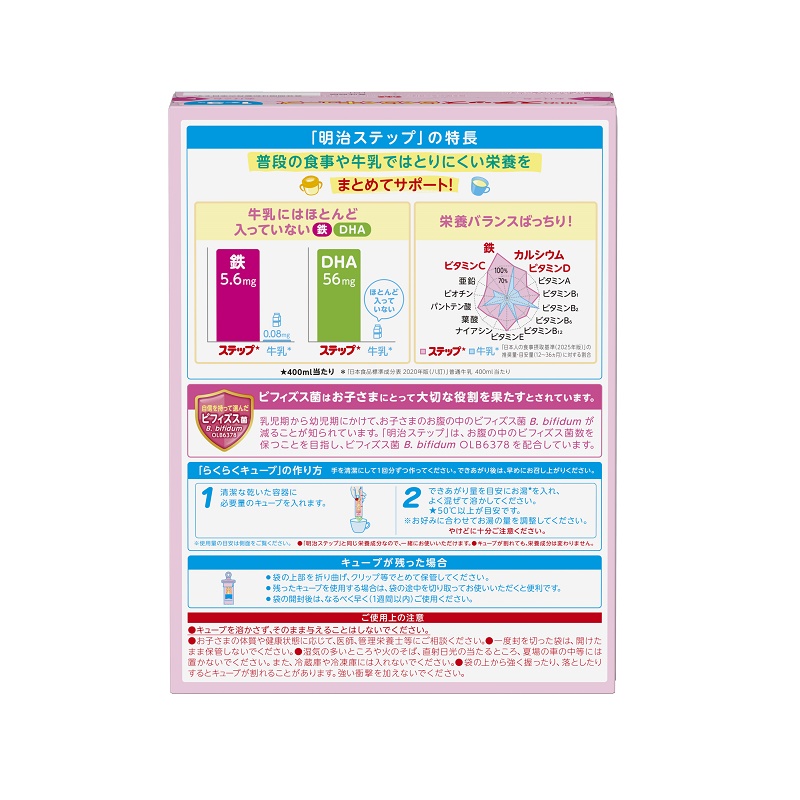 明治ステップはコップ2杯(400ml)で1日に必要な量の100%を摂取できます。