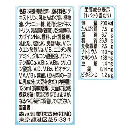 1本でエネルギー、たんぱく質の他、色々な栄養成分をバランスよく補給できる総合栄養飲料。