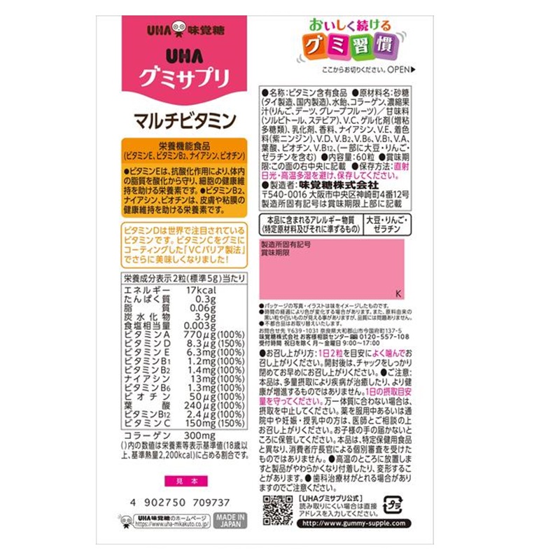 アレルギー物質:大豆・りんご・ゼラチン