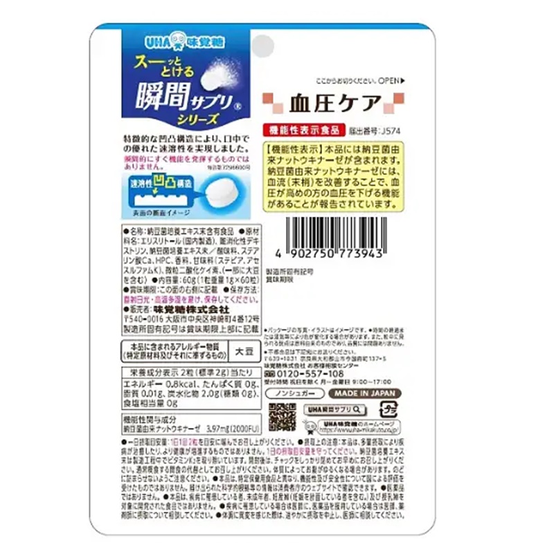 納豆1.3パック分のナットウキナーゼを2粒に凝縮、血流を改善、血圧を下げるのをサポートします。