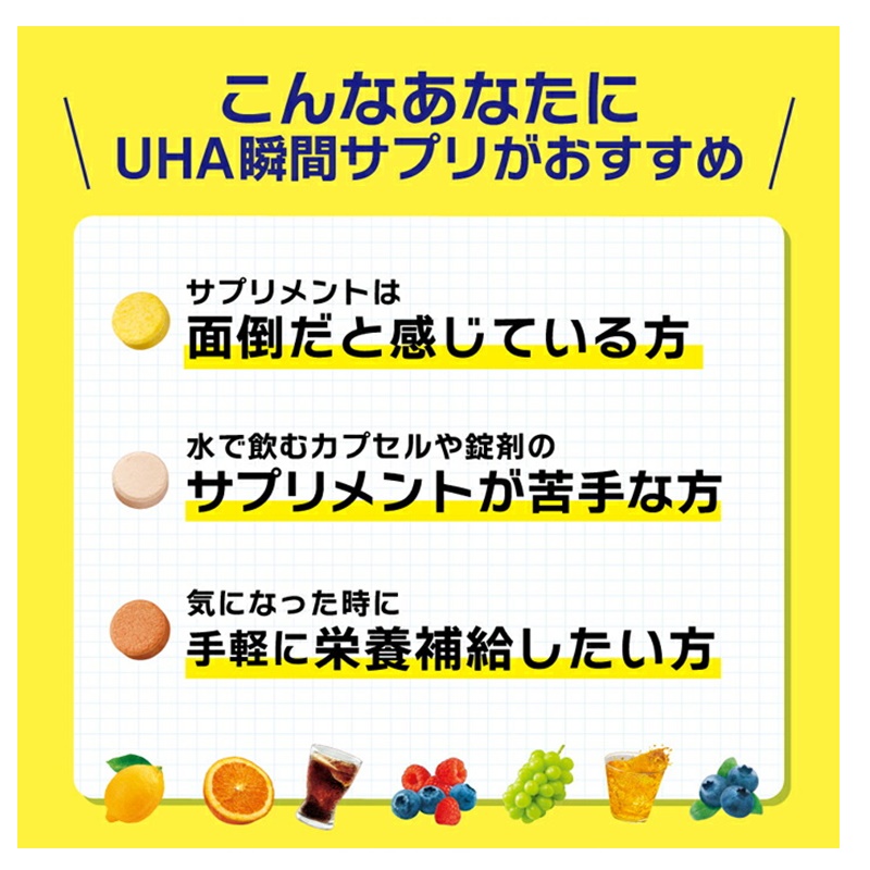 水が要らず口の中ですぐ溶けるので、誰でも美味しくサプリメントを楽しんで頂けます。