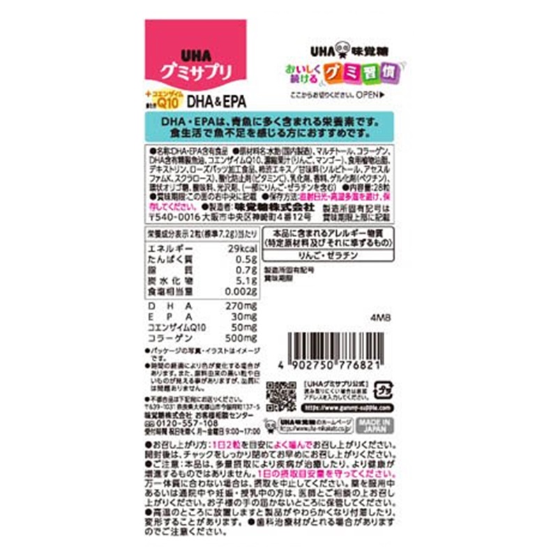 脳内にはほとんど存在しないEPAをグミ2粒にそれぞれ270mg・30mg配合しております。