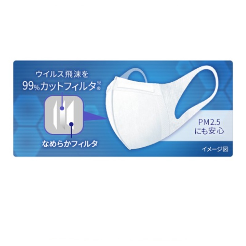 三層構造フィルタと全面フィット構造でスキマを作らず強力に遮断する立体マスクです。