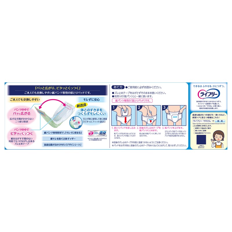 - パッと広がりピタッとくっつく紙パンツ用パッド