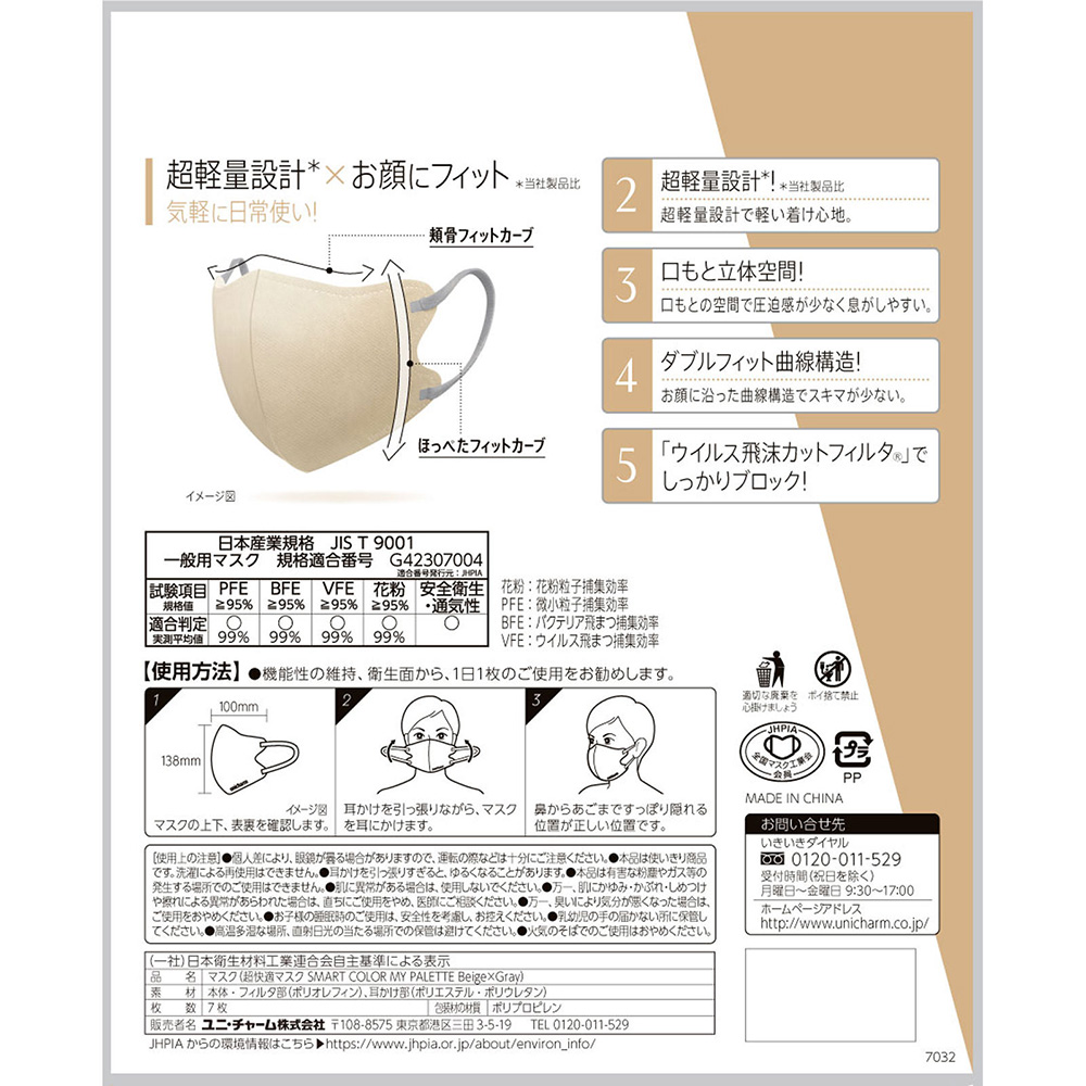 立体形状だから圧迫感少ない着け心地と、なじみやすいナチュラルカラーで日常使用に。