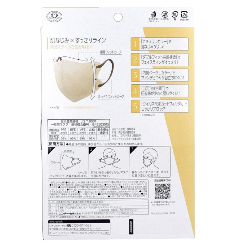肌なじみのよいナチュラルカラーとフェイスラインがすっきりみえるダブルフィット曲線構造で顔なじみがよい。
