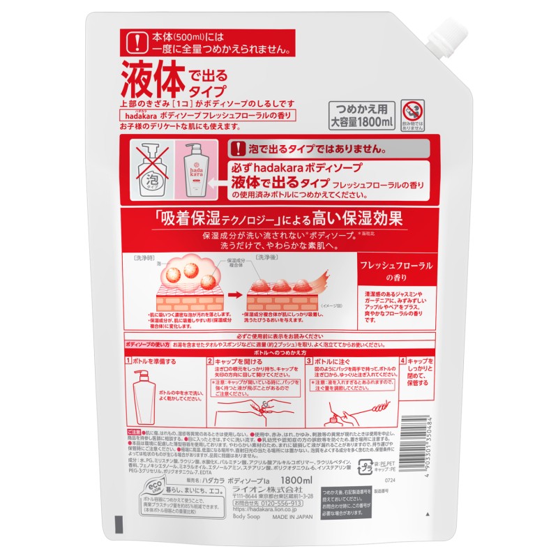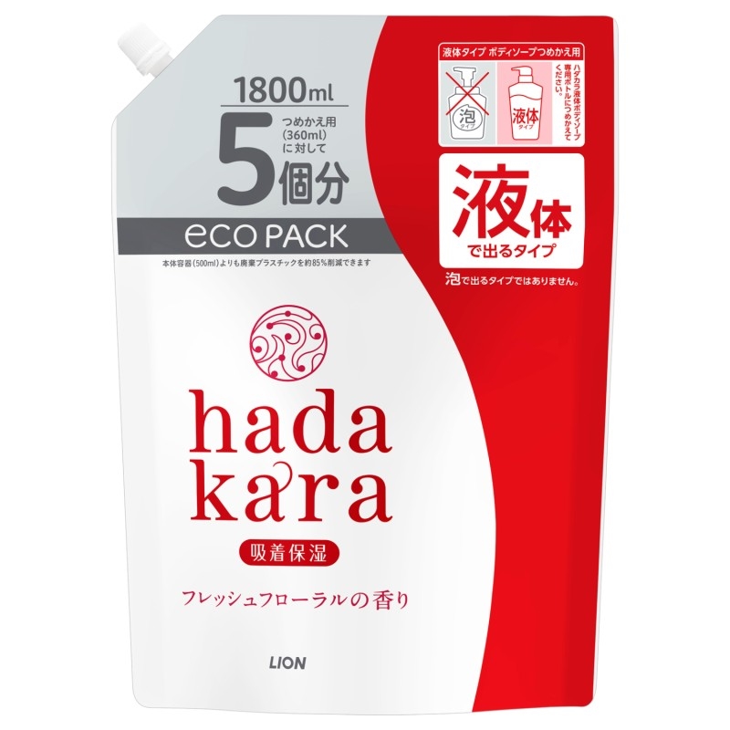 ●吸着保湿テクノロジーで保湿成分が洗い流されないボディソープ「ハダカラ」。洗うたび、みずみずしくうるおう肌に。