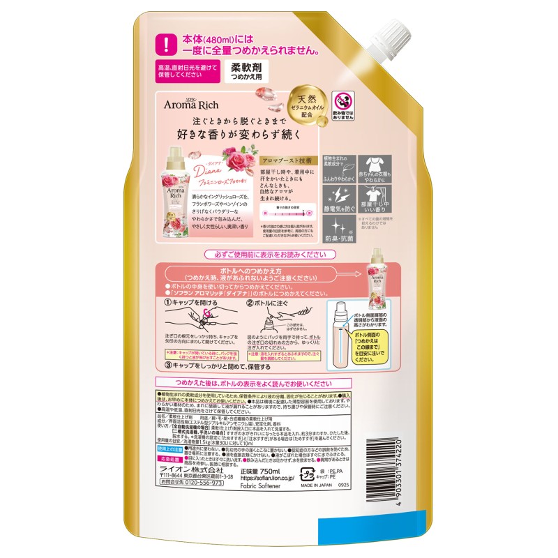 ●ソフランAromaRich。注ぐときから脱ぐときまで好きな香りが変わらず続く。