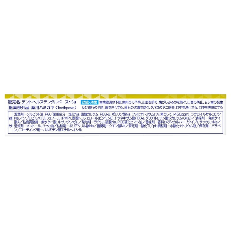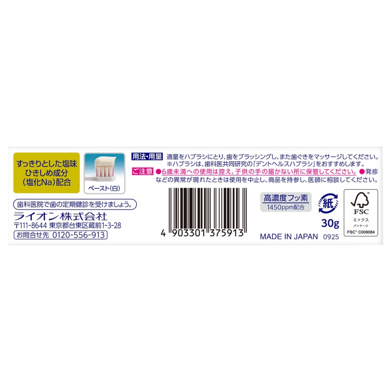 ●塩化Na、硝酸カリウム、PEG-8、ポリリン酸Na、フッ化ナトリウム(フッ素として1450ppm)、ラウロイルサルコシ