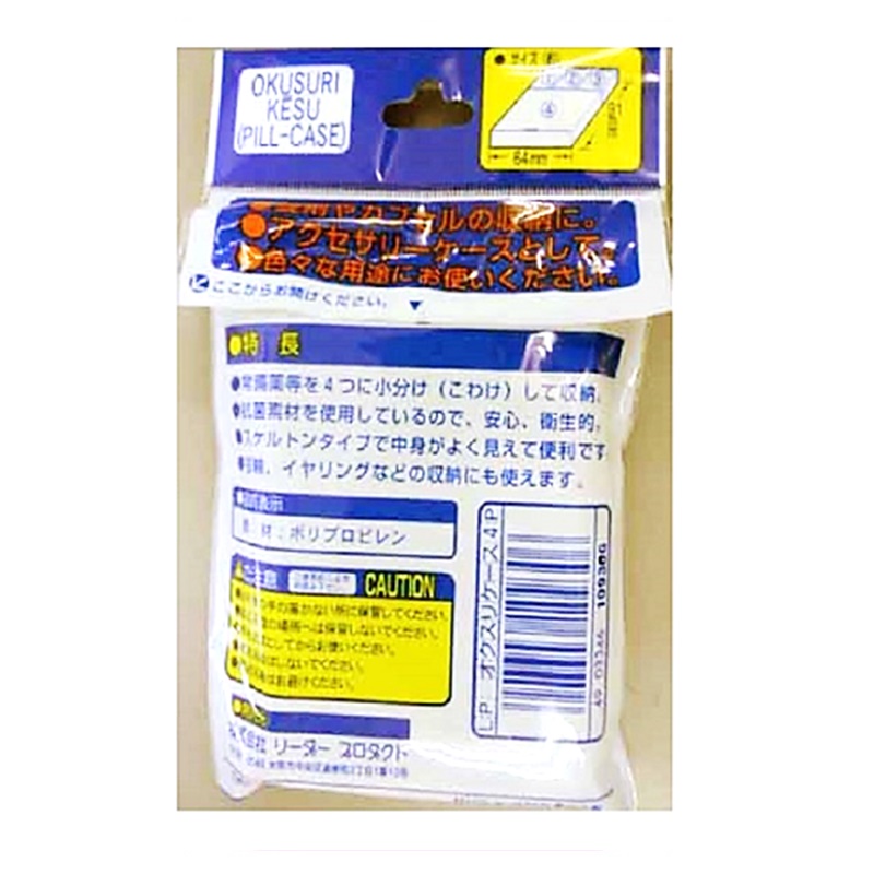 「リーダーおくすりケース4ポケット」は、薬を小分け、携帯するのに便利なピルケースです。