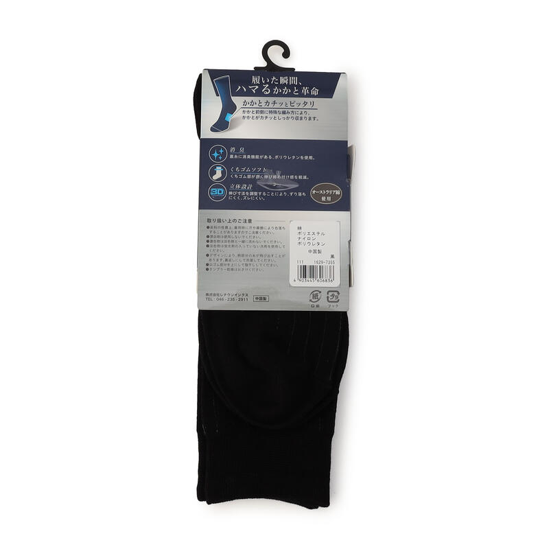かかと前に特殊編地を入れる事により履いた瞬間、かかとカチッとピッタリ。