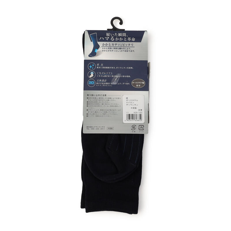 かかと前に特殊編地を入れる事により履いた瞬間、かかとカチッとピッタリ。