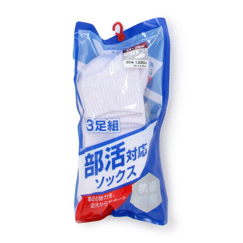 部活の激しい動きだけではなく学生の日常に合わせられる無地ソックス。