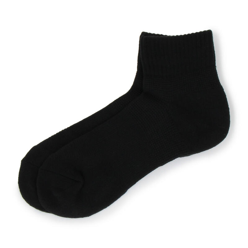 足首からかかと周りをしっかりサポートし、足底パイル編みでクッション性がよく着地の負担も軽減。