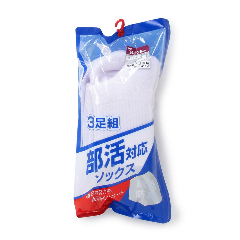 部活の激しい動きだけではなく学生の日常に合わせられる無地ソックス。