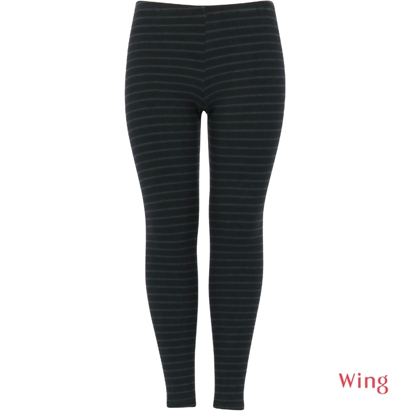 薄手なので寒い季節のボトム下にも重ねやすく、レギンス感覚ではけるニュアンスのあるカジュアルなボーダー柄が、