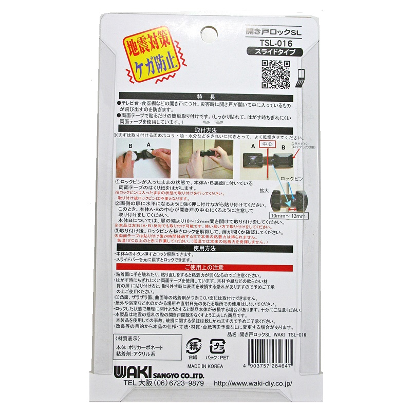 開き戸ロック スライドタイプ TSL-016
