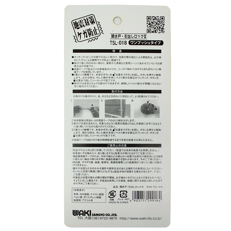 開き戸をしっかりロック!地震の揺れによる引出しの飛び出しを防止。お子様のイタズラによるケガ防止。