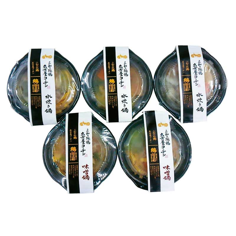 名古屋コーチン水炊き小鍋3個、名古屋コーチン味噌小鍋2個