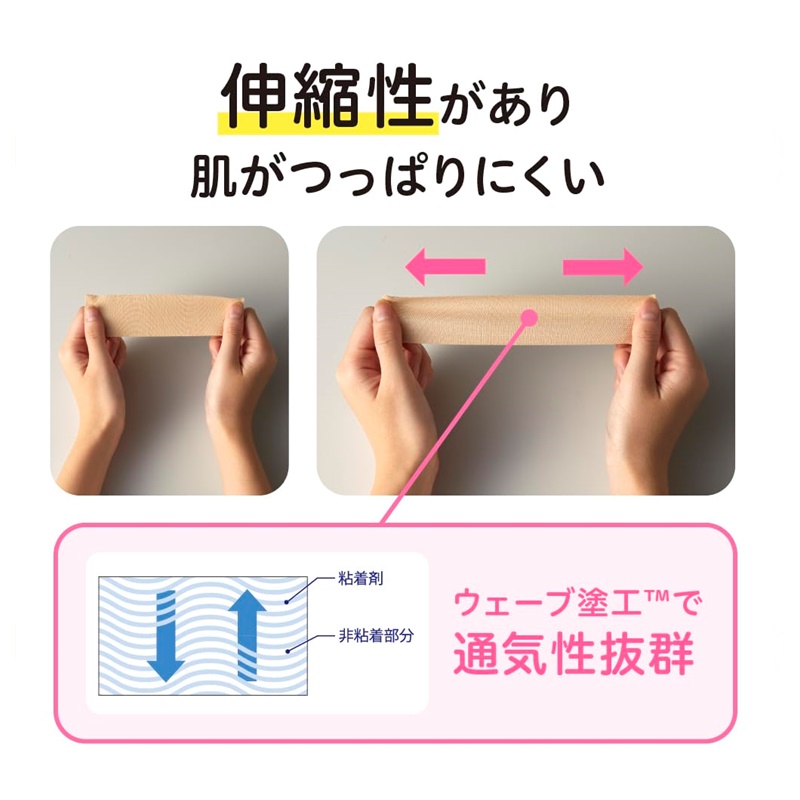 一度巻でしっかり固定し、貼る感覚で巻ける肌にやさしい包帯です。