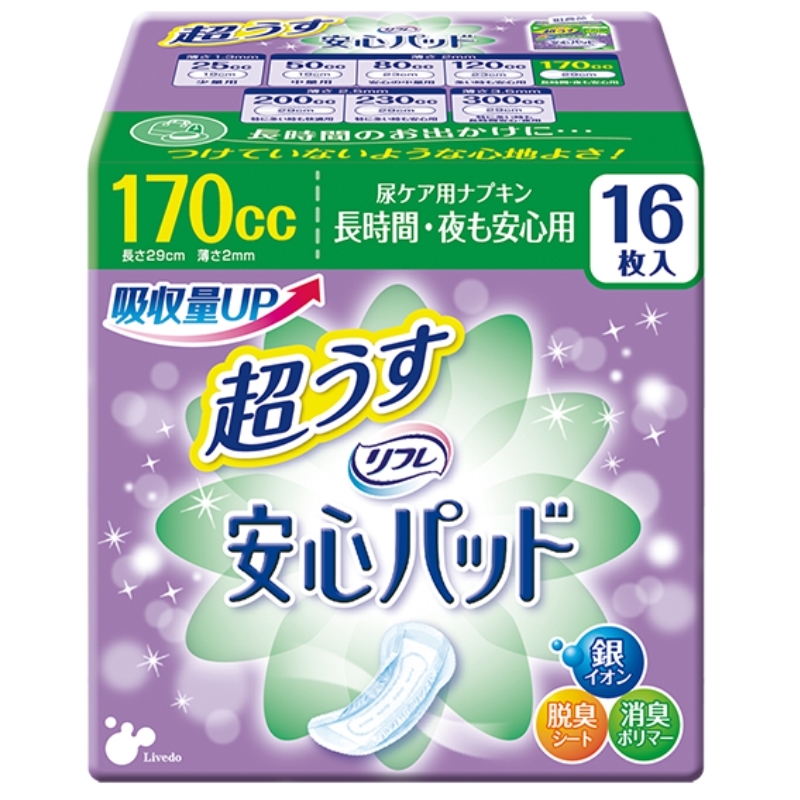 超うす型なのに安心の吸収力の軽失禁パッド。